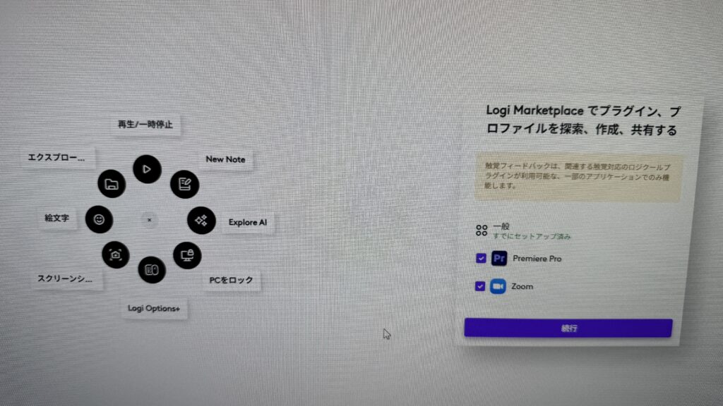 「No haptic plugins were found. Click below to explore the haptic enabled plugins from the Logi Marketplace」と表示されます。2デバイスの使用中に使われているOS。